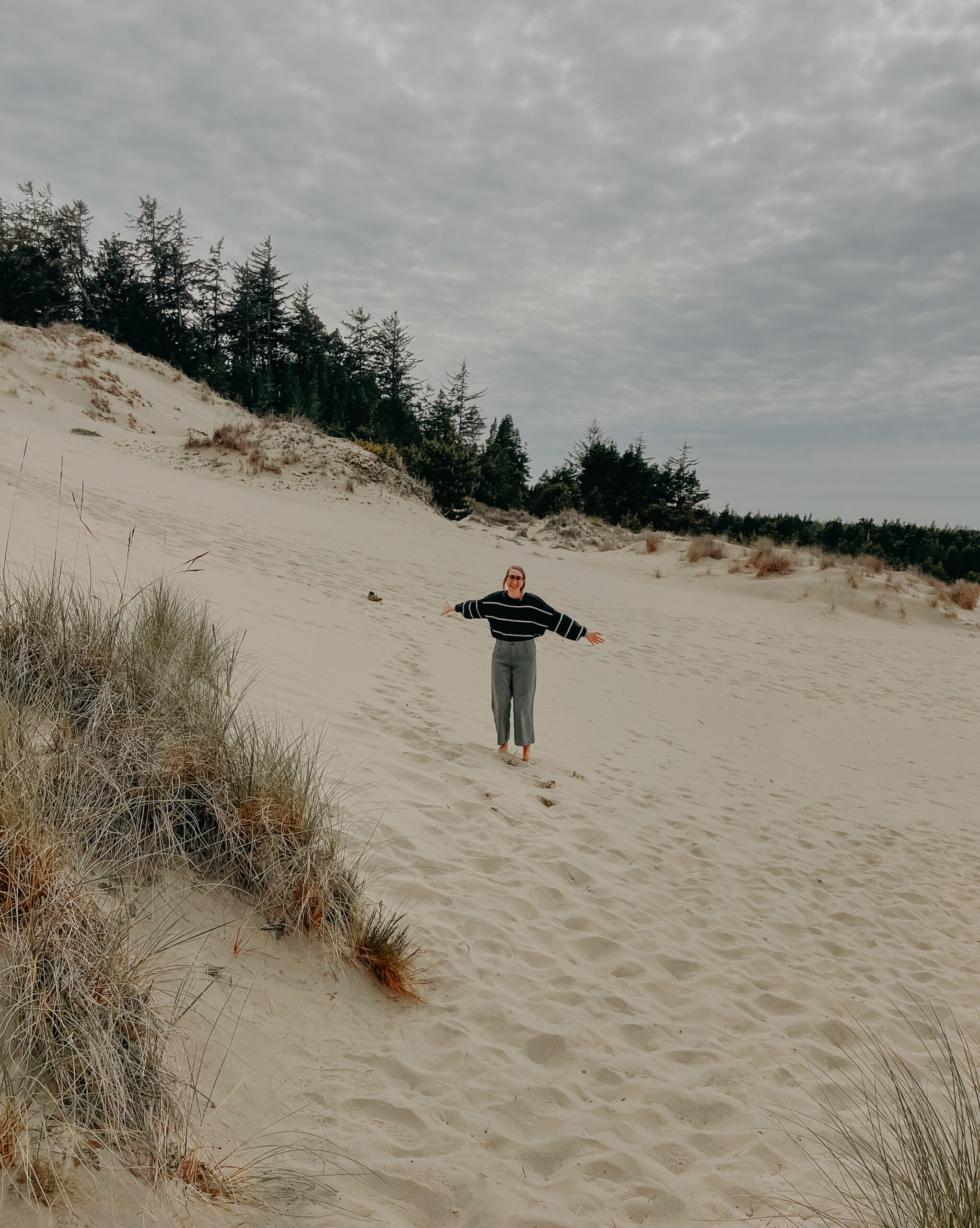 Florence is known for sweeping sand dunes, and when we stopped at the Jessie M. Honeyman Memorial State Park on our way down to Brookings we were blown away by this natural area. There’s a small walk down to the dunes from the parking area, with restrooms available. A $10 day use fee is required to park.
